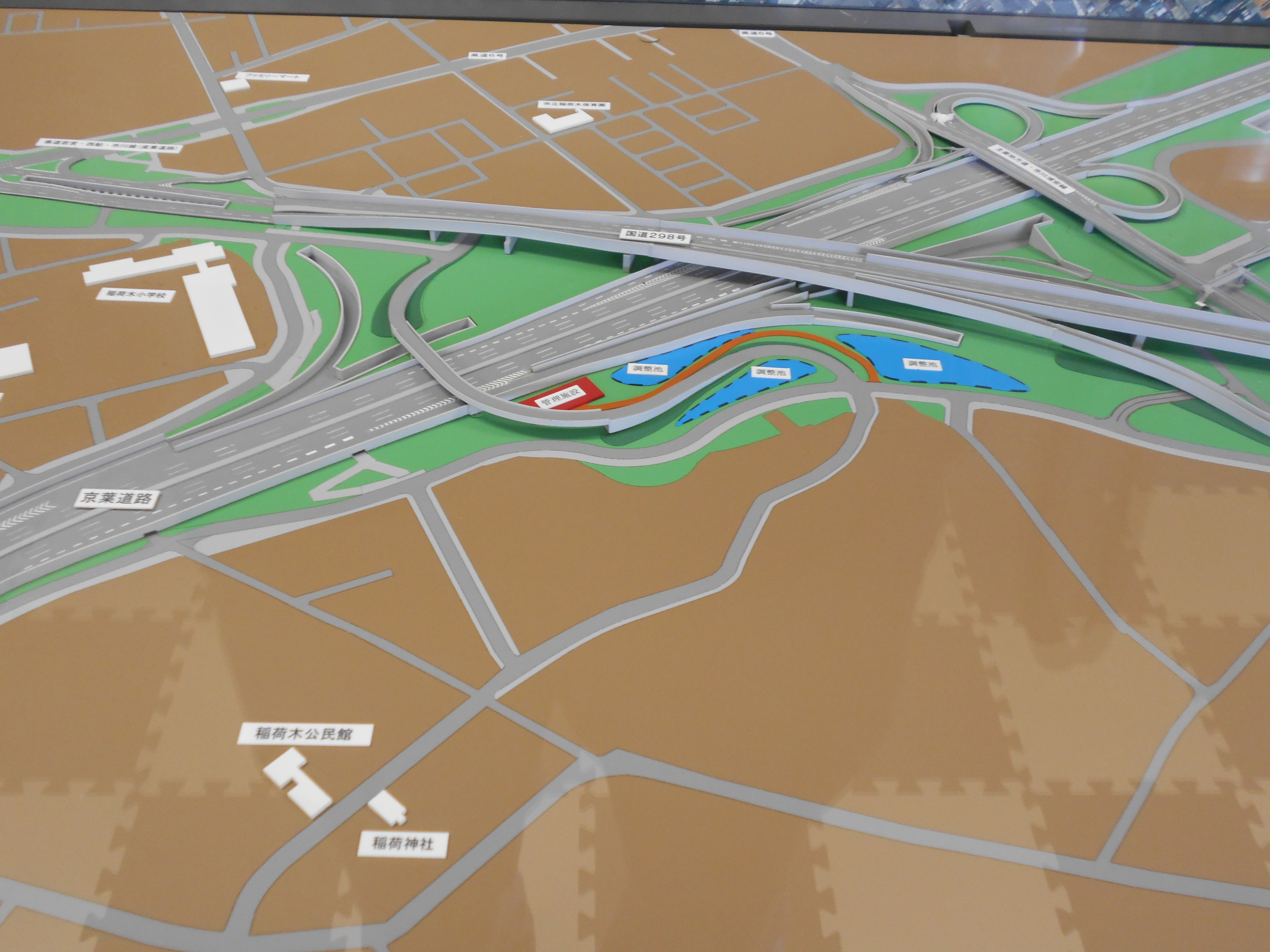 今回の現場研修会は、東日本高速道路株式会社殿のご厚意により千葉県区間の延長約12.1kmのうち、同社分担施工範囲である京葉道路交差部付近の田尻工区(京葉JCT)について、概要説明と施工中の現場案内をして頂いた。