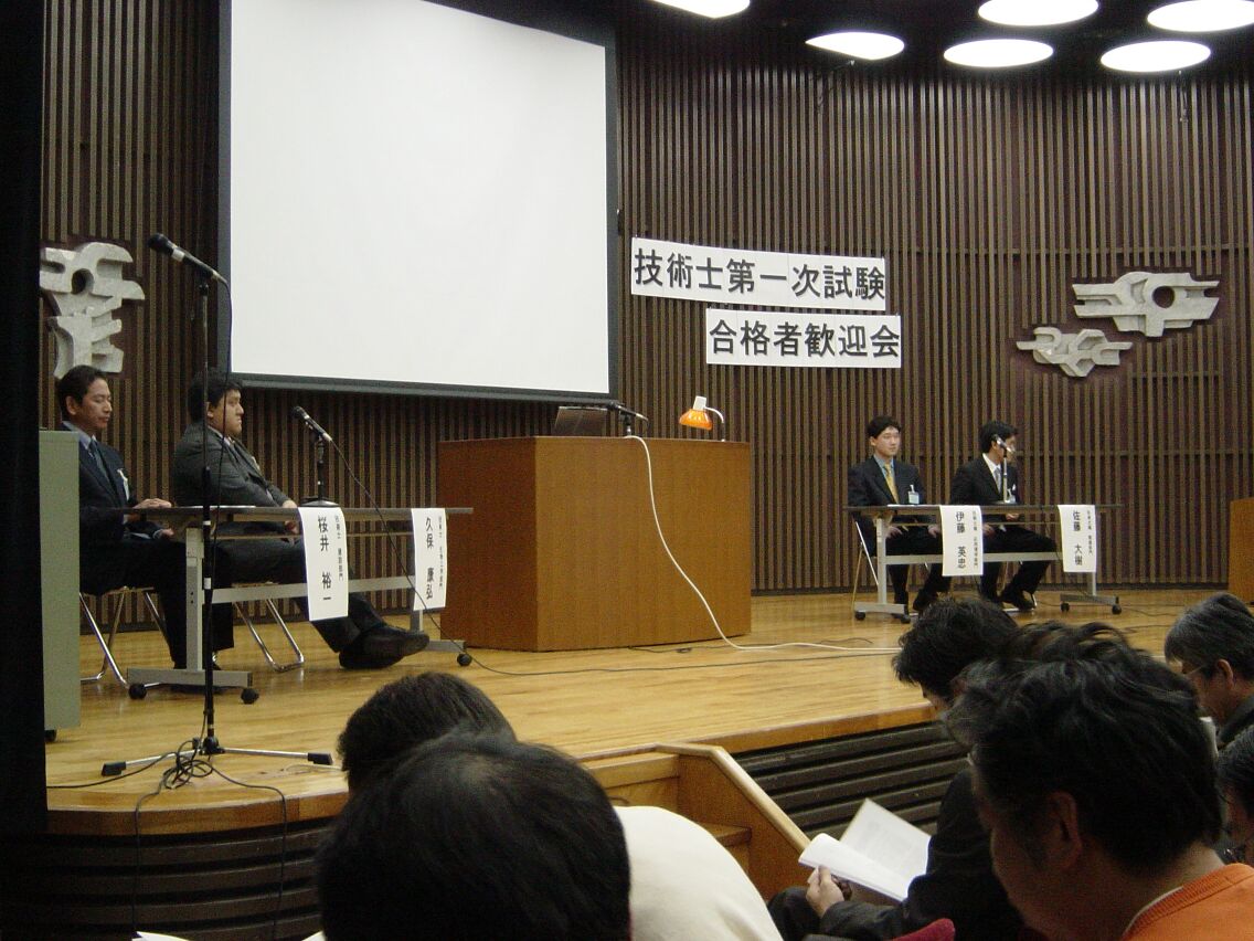 コーディネータ 青年技術士懇談会 佐藤 嘉憲 パネリスト 1.実務経験での合格者 桜井 裕一 技術士(建設部門) 2.技術士補からの合格者 久保 康弘 技術士(生物工学部門) 3.企業からの修習技術者 伊藤 英忠 技術士補(応用理学部門) 4.大学からの修習技術者 佐藤 大樹 技術士補(環境部門) |
