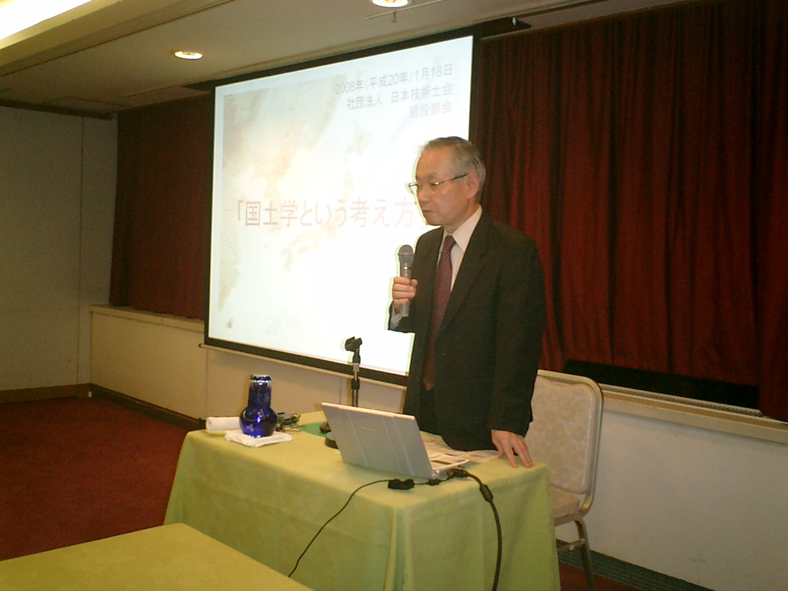 平成20年、最初の講演は(元)国土交通省技監で現在、(財)国土技術研究センター理事長の大石久和氏にお願いした。 本日は「国土学という考え方」との演題で、我々、建設業界人が最も親しみある公共事業・社会資本整備を事例にとり、国土への働きかけの考え方についてご講演いただいた。 冒頭、昨今新聞紙上を賑わしている道路特定財源、暫定税率の話題から始まり、一般財源化された場合の影響、暫定税率の廃止にともなう影響について、諸外国での変遷を例示し、予想される諸問題について提起された。また真実を伝えていないマスコミにも問題があるとの警鐘も発せられた。 次にインフラ整備について、国土の歴史的形成(時間軸)と国土の国際比較(空間軸)の両面から、陸続きの諸外国と島国である日本の都市国家形成の経緯と国民性の相違について述べられ、契約に対する表現手段の違い、市民(共同体)意識が育まれる土壌の違いから、自然条件・社会条件の違いを認識し、俯瞰的な物事の見方の必要性と公環境の中に存在する私環境の考え方などについて言及された。 需要の少ない日本、その結果、経済がうまく循環しない日本。その日本列島(国土)をハンドリングする上での公共事業の果たすべき役割、その過程で継続的な国土への働きかけが恵みとして還元される一連の流れが国土学である。いま、個々が真剣に考えないと日本国民の将来の豊かさに影響を与えることになるとの問題提起がなされた。 国土学の考え方は講演者の著書「国土学事始め」(毎日新聞社出版)や現在、連載中の週刊 サンデー毎日の「国土のかたち」でも述べられているが直接、著者から図を交えながら迫力ある講演を聞けたことは日本技術士会 会員にとって幸運で平成20年のスタートにふさわしい講演会であった。 (伊藤康裕 記) 【写真-1】 大石 久和 氏の講演 【写真-2】 講演会の状況 |