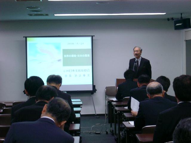 1.持続可能な発展とは何か 現在、環境問題は世界最大の問題として扱われており、その影響は深刻の一途をたどっている。今回の講演では「世界の環境・日本の環境」という講演題目のもと日本と世界の環境問題に対する考え方や取り組みの違いなどを講演頂いた。 環境問題とは大きく二つの問題に分類することができる。ゴミ問題と遺伝子の消失である。我々は普段の生活で発生する生活ゴミや我々が普段利用している建築物や土木構造物、そして生活の中で排出されるCO2など大量のゴミを発生させ、木材の大量利用や開拓によって自然を破壊し野生動物などの遺伝子を消失させている。今のような生活を続けていけば土壌が枯れ、植物が育たなくなり、野生生物が消え、ついには食料を得ることも困難になり、人類の崩壊を迎える。 近年、ヨーロッパをはじめとする世界の国々では “持続可能な発展”をキーワードに掲げ対環境問題に取り組んでいる。野生生物が生きるためには大規模な自然が必要であり、自然を保つためには豊かな土壌が必要である。つまり、土壌を豊かにすることが環境問題を抑制するポイントであるという。ヨーロッパ諸国ではそういった意識が高く自然を乱さないことで大規模な自然を確保し、自然のネットワークを利用した街づくりが行われている。自然と共存していく重要性をひとりひとりが認識し、環境問題に対して高い意識を保持していることが理解できた。 2.持続可能な発展に向けて私たちが抱える問題 持続可能な発展に向けて私たちが抱える問題として、自然生態系の概念付けの上で、土地利用における問題、河川・海岸の問題、外来種、携帯電話に含まれるレアメタル、焼却されるゴミによるCO2の問題などについて解説して頂いた。 3.効果的な自然の残し方・つくり方 効果的に良い自然を残すには、大規模自然(大拠点)と小鳥の住む都市公園(中拠点)と家庭の庭や屋上緑化(小拠点)を川や林など自然の回廊で結ぶことであること、そしてブータンでは、自然公園として遺伝子を守るために60%以上の自然を残してつないでいる実例などとともに、東洋の「共存の思想」が欧州で注目されていることを紹介された。 (野村 貢 記)