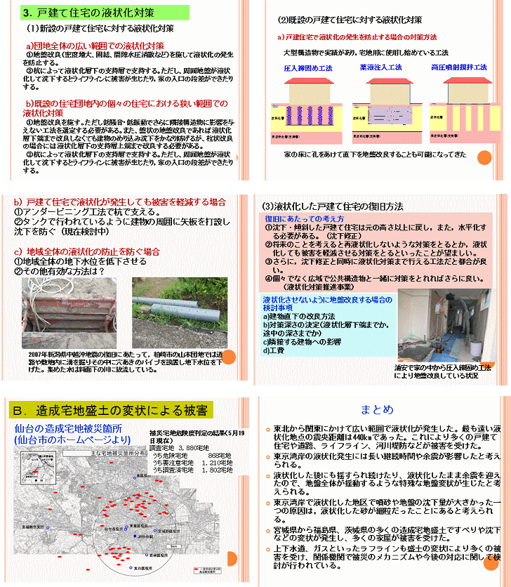 はじめに インフラは人々に「安全、便利、良い環境(Safety,Convenience,Environment)」、を提供するものであり、人々の生活にとってなくてはならないものである。現在、地球温暖化問題が話題となっており、この問題は人類に歴史的な災害をもたらす。予想される災害を防ぎあるいはそれに適応するのがインフラの役割であり、土木技術者は先頭に立って温暖化対策に取り組む必要がある。今回は温暖化問題や災害に詳しい褐嚼ン技術研究所会長、前土木学会会長の石井弓夫氏ご講演頂きました。 1.災害とは何か 災害は自然現象や人為を引き金とした社会現象であり、産業革命以降の自然の改変や、CO2などのGHG(グリーンハウスガス)による気候変動、地球温暖化など土木による自然改造、開発など人間の力が自然の容量と比べ大きくなり、自然を変化させ災害をもたらすようになってきた。 原因として気象・地震等の自然災害と気候変動やテロ・戦争等の人為災害に分けられ、被害の種類として大きく直接被害(死傷者、家屋損壊、ビル・工場被害、資産滅失、社会不安と混乱)と間接被害(通勤不能・情報システム停止・被災地区からの物流停止による企業活動停止、得意先を奪われるなどビジネスチャンスの喪失、情報ネットワークと行政機能の停止)に分類できるが、近年では間接被害が大きくなってきている。 2.インフラと気候変動 環境省地球温暖化影響・適応研究委員会報告によると日本の平均気温上昇は最大で4.7℃の報告があり、災害危険度は増大してきており、建設産業(製造業のセメントなども含み)が自ら排出するCO?は総量の42.7%であり、GHGの低減と災害を防ぐ手段が求められている。 国土交通省によると降水量の増大、洪水の増大、土石流の激化、高潮及び海岸侵食の増大、渇水リスクの増大、河川環境の変化など気候災害安全度の低下が懸念されている。 3.温暖化災害防止への土木技術者の貢献 GHG排出緩和策(Mitigation)として、構造物的対策としてハード対策(エネルギー供給方法改善、CO2削減、炭素固定)、ソフト対策(総合アセットマネジメント、CDM、公共調達への反映、国際協力等)が挙げられる。しかし現実的で効果的な手段は適応策であり、海面上昇対策、土地利用の変更、異常気象・気候変化対策といった構造物的対策(ハード対策)、都市環境整備、国際協力、治水ソフト対策、治水を河川事業全体に広げた統合流域管理などソフト施策の適応策の推進が重要となってくる。 土木学会等においても地球温暖化対策特別委員会など、地球温暖化防止に向けての研究・活動が行われており、土木技術者は官、学、民一体となって、推進していかなければならない。 4.結論 気候変動に対応するには緩和策と適応策を取るとともに低炭素社会の実現を図らなければならない。気候変動がもたらす危機に備えるために、変動の予測精度の向上、緩和・適応能力の向上を国際、国内、地方レベルで図らなければならない。低炭素社会の実現を促進するために、個人、企業、各国それぞれのレベルでの経済的、政治的手段を取るべきである。 技術者の取るべき行動として、災害は社会現象であり、防災は広い視野で当たらねばならず、社会に関する不断の勉強が不可欠である。気候変動は人類の危機と認識し、気候変動をめぐる政治・経済情報を敏感にキャッチし、技術者として低炭素社会の実現を促進するための業務を遂行すべきである。緩和策、適応策はまさにコンサルタント業務である。優れた成果を挙げることが強く望まれる。 最後に 災害は自然災害であるが、近年は人為的開発やCO?問題で発生していることを解説頂き、またそれへの対応策・適応策についてご指導頂き、特に適応策の検討・実施が今後は重要になることを説いて頂きました。 講演会の最後にCO2削減の地球温暖化防止への寄与や途上国と先進国の役割など多くの質問に対してCO2削減の計画、設計、施工時の取り組みの計画など、今度土木関係技術者の方向についても示唆して頂き、たいへん貴重な講演会となりました。