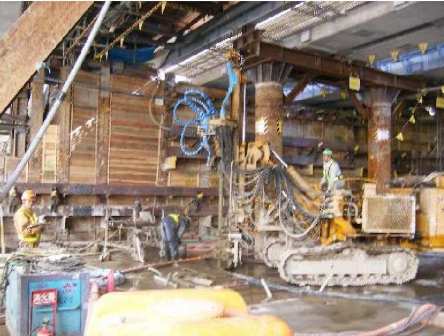 | 報 告 | 1.概要説明 パワーポイント及びパンフレットを基に説明していただいた。 全国最大級のターミナル駅である新宿駅は1日当たりの乗降客が320万人と全国一であり、その周辺は商業・産業・文化の中心として躍動している。一方、駅周辺では以下の都市的問題を抱えている。 ○ 新宿駅南口を通る一般国道20号(甲州街道)は利用客を待つタクシーの行列や路上駐車があふれ、慢性的な交通渋滞が発生している。 ○ 新宿跨線橋は架設80有余年が経過しており、老朽化に伴う耐震・ 時の安全性低下が懸念されている。 ○歩道が狭いことで歩行者がスムーズにすれ違うことも困難な状況となっている。 ○ 駅周辺の高速バス関連施設は分散しており、他の交通機関との乗り換え機能が乏しい。 このような現状に対応すべく、新宿南口地区基盤整備事業では以下のような事業を実施し、問題解決に向けた取り組みが進められている。 ○新宿跨線橋の架け替えを実施し、道路・歩道の拡幅による交通機能の回復や耐震・ 時の安全性を向上。 ○ 甲州街道南側の線路上を活用し、歩行者広場や高速バス・タクシー乗り場などを整備し、交通結節点機能を強化。 ○地下鉄13号線新駅から新宿駅とを結ぶ地下歩道をつくり、安心・安全な歩行空間の創出。 ![]() 【写真−1】 新宿交通結節点整備完成イメージ 【写真−2】 新宿南口地区基盤整備 事業位置 【写真−3】 事業対策官による概要説明2.交通結節点施設(人工地盤)施工現場見学 新宿南口地区基盤整備事業の柱の一つであるのが甲州街道南側の線路上を活用して、約1.47ヘクタールの人工地盤を創り出し、この人工地盤上に歩行者広場や交通施設等を整備する計画である。今回はこの交通結節点整備において人工地盤架設現場を見学させて頂いた。線路上に架設するということから、鉄道を停めて作業を行うことは困難であり、作業はJR新宿駅の終電後から始発が運行するまでの深夜に集中して行われ、実質作業は1日約2.5時間ほどしか行えないという厳しい作業工程の中進められる。人工地盤は現在、計画の半分ほど架設されており、人工地盤上を実際に歩いて見学させて頂いたり、人工地盤地下部の掘削作業を見学することができた。 ![]() 【写真−4】 人工地盤架設現場 【写真−5】 人工地盤地下部掘削現場 3.歩行者地下通路工事現場見学 地下鉄13号線新駅から新宿駅とを結ぶ地下歩道整備では、アンダーピニング工法により取付高架橋の機能を維持しながら、高架橋下に構造物(地下歩道)をシールドマシンにより掘削していく計画である。現場見学では坑内を見学させて頂いた。シールドによる掘削は終了しており、内装工事に取り掛かっている最中であった。 ![]() 【写真−6】 地下歩道坑内の様子 本見学会では列車の運行を維持しながら線路上に人工地盤を施工、また取付高架橋の機能を維持しつつ高架橋下を掘削していくなど、困難かつ特殊な施工現場を見学させて頂いた。 貴重な時間を割いて頂いた国土交通省東京国道事務所の稲垣事業対策官及び関係者の方々に心からお礼申し上げます。 (建設部会 澤田 賢太郎 記) |