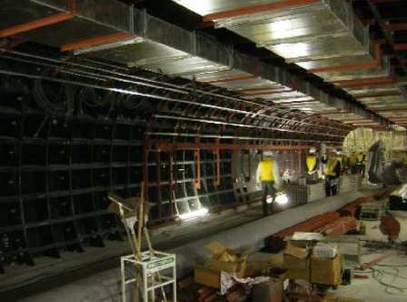 | 報 告 | 1.はじめに 見学会当日は、地下鉄副都心線正面改札口に集合し、参加者18名の受付を終了し、東急電鉄鰍フ山崎主事から建設現場まで案内していただきました。 2.工事概要説明 現在建設中の新・渋谷駅工事現場まで徒歩で移動し、工事用エレベーターに分乗して、地下にあるプレゼンテーションルームに到着しました。そこで山崎主事から東急東横線渋谷〜代官山間地下化工事の概要をパワーポイントで約30分説明を受けました。 事業内容としては、東急東横線の渋谷駅から代官山駅までの約1.4km区間を地下化し、平成20年6月に開業した都市高速鉄道第13号線(東京メトロ副都心線)と渋谷駅で相互直通運転を行うものです。 この事業によって東武東上線・西武池袋線から東京メトロ有楽町線・副都心線を経て、東急東横線およびみなとみらい線までがひとつの路線として結ばれ、首都圏の広域的な鉄道ネットワークを形成するといった内容の説明がありました。 次に地下化計画区間約1.4kmの工事内容について、シールドトンネル部、箱型トンネル部そして堀割部の3工区に分けて工事の特徴などについて説明を受けました。特にシールドトンネルは、鉄道複線断面形状を包括する2連矩形断面を掘削するためアポロカッター工法という特殊なカッター機構を持つシールドマシンを採用しており、カッター駆動を動画で表現するなど大変わかりやすい説明を受けました。 ![]() 【写真−1】 山崎主査による概要説明 【写真−2】 シールドマシン(パンフレットより) 3.工事現場見学 説明をひと通り伺った後、いよいよトンネル内に入り、セグメントによって仕上がったトンネル内部を通り、シールドマシンの真後ろまで接近して設備類を見学しました。 その後地上に出て、現東横線高架橋沿いに移動しながら、トンネル通過に伴う高架橋補強工事の実施状況を見て、到達立坑そしてJR交差部の工事箇所を通り、代官山駅周辺の改良工事を眺望しました。 現場見学を終えて、東急電鉄工事事務所会議室に集合し、質疑応答を行いました。質問は事業内容から施工方法に至るまで多岐にわたり、大変活発な討議が行われました。 ![]() 【写真−3】 シールドトンネル発進立坑 【写真−4】シールドトンネル坑内 【写真−5】 到達立坑内4.おわりに 今回の見学会は、首都圏における大規模な鉄道都市土木の現場ということで、営業線の管理また周辺地権者、そして往来の一般者の方々の安全を確保しつつ、プロジェクトを遂行するというとても貴重な見学会でした。 工事説明ならびに現場立会い等に携わっていただいた東京急行電鉄鰍ネらびに工事関係者の方々に感謝いたします。 また、見学会に参加者いただいた方々大変お疲れ様でした。 (建設部会 佐藤 栄徳 記) |