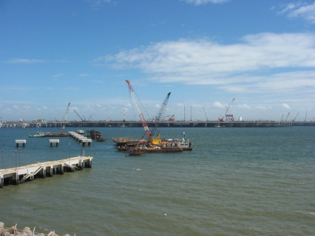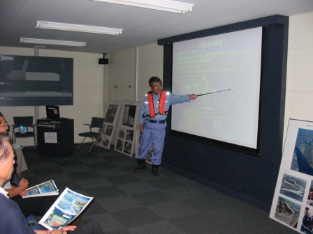 | 報 告 | 1.はじめに 本見学会は、昨年10月に実施しました講演会「演題:羽田空港拡張工事について」において、現地を見学したいとの要望があったことや講演会講師の松永企画官から快諾を得たことから、関東地方整備局東京空港整備事務所の担当窓口と交渉を重ね、この見学会の実現に至ったものです。 当日は、羽田空港第2旅客ターミナルビル到着ロビー(出会いのひろば)に集合し、全参加者16名がそれぞれ4台のタクシーに分乗し、目的地である「D滑走路展望台」へは予定時間より少し早めに到着しました。 2.工事概要説明(13:30〜14:00) 13時30分から吉田課長(桟橋担当)より、羽田空港D滑走路建設工事についてパワーポイントを基に約30分説明をして頂きました。 先ず、羽田空港は、年間乗降客数約6,700万人、取扱貨物量約71万トン、離着陸回数約30.3万回規模の国際空港で、その処理能力は既に限界を迎え発着容量の制約解消が急務であり、そのために再拡張事業の早期実施が必要であると、事業の背景について説明がありました。また、今回見学する桟橋部(ジャケット式)の構造、規模、施工方法、工事工程等についての概要の説明がありました。 【写真−1】 吉田課長による概要説明【桟橋規模】 ・幅:520m 長さ:1,100m、面積:約52ha、水深:14〜19m、使用鋼材重量:約35万トン 【ジャケット構造】 ・1基:幅63m×奥行45m×高32m、重量約1,300トン/基、総基数:198基 【施工方法】 ・上部ジャケット(3箇所)、下部ジャケット(2箇所)を製作、海上輸送し、千葉ヤードにおいて上下部ジャケットを組立て一体化後、所定位置に運搬し専用クレーンにて据付 【工事工程】 ・桟橋工事:平成22年 8月完成予定 ・D滑走路:平成22年10月運用開始予定 3. D滑走路(桟橋工区)の見学(14:00〜15:10) 工事概要の説明終了後、管理桟橋に徒歩で移動し監督船(右写真)に乗船し(約6〜7分)D滑走路桟橋工区に到着。D滑走路桟橋工区は、滑走路全長3,120mのうち1,100mを占め、T工区、U工区、接続部工区の3工区に分けられ工事が進められています。 ![]() 【写真−2】 監督船 【写真−3】 桟橋工区遠景 ![]() 【写真−4】 滑走路床版を支持する鋼管杭(φ1.6m) 【写真−5】 一体化ジャケット据付専用クレーン ![]() 【写真−6】 UFC床版工(外周部) 【写真−7】 PC床版工(滑走路・誘導路部) 4.おわりに 当日は、風波浪が高く危険なため予定していた海上見学は中止となりましたが、スケールの大きい工事現場を見学できました。また、貴重な時間を割いて頂きました国土交通省東京空港整備事務所吉田課長を始め関係者の皆様に、心より御礼申し上げます。 (建設部会 宮下紀代則 記) |