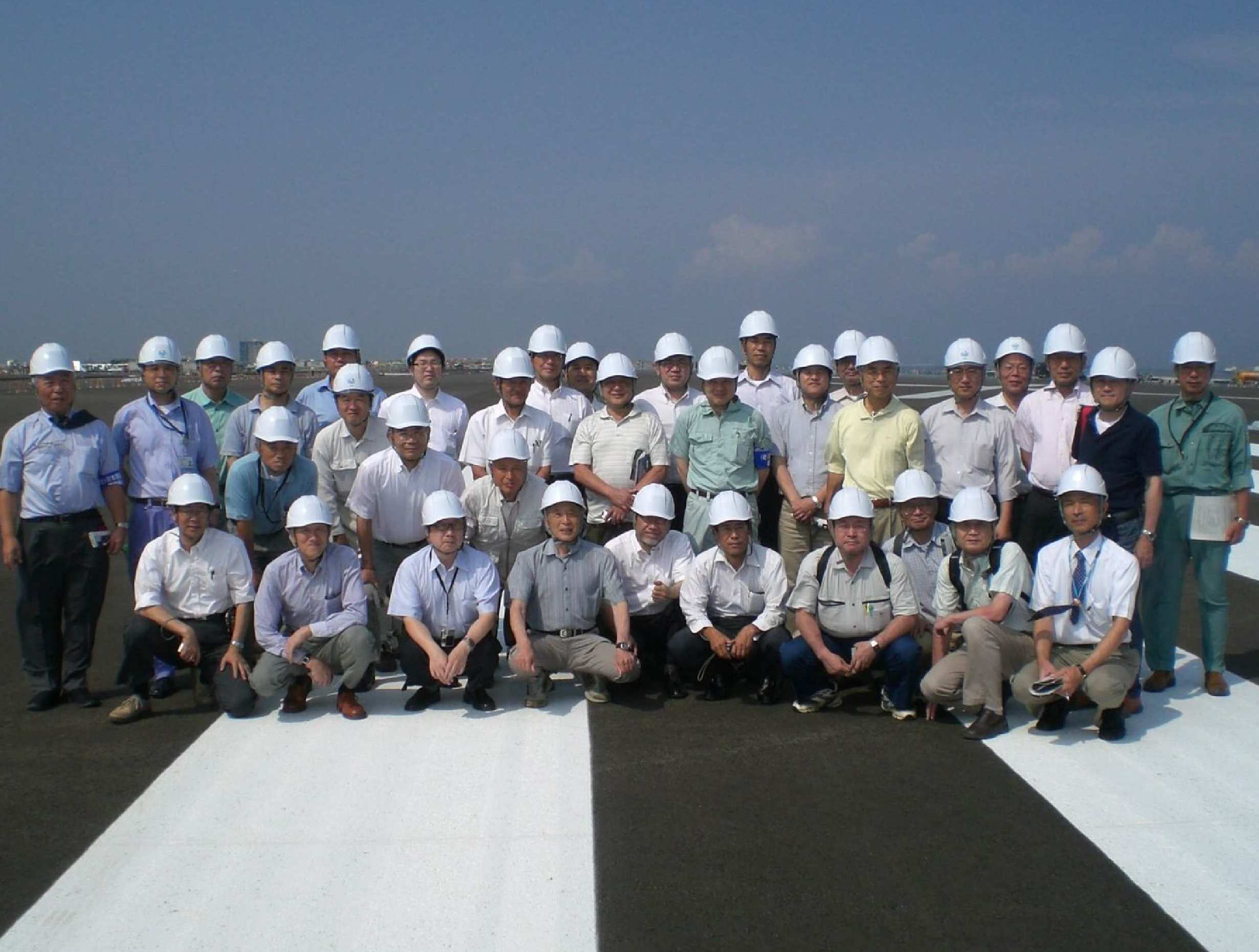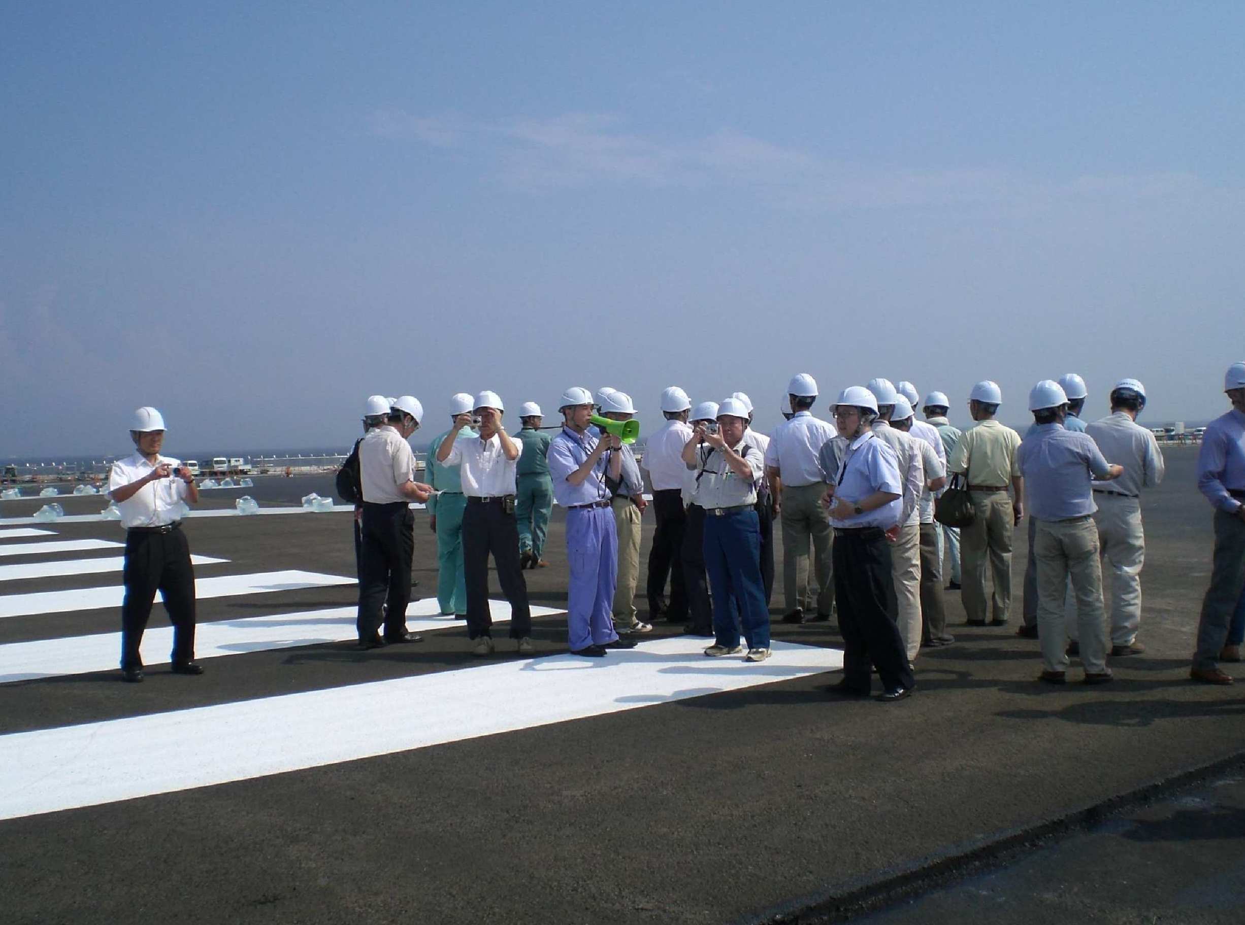 ![]() 【写真−2】 工事現場状況 【写真−3】 現場見学状況 3.あとがき 今回の見学会により、建設部会の一連の羽田拡張工事についての研修は、終了となるが、今回は、今野室長よりプロジエクト全体の事も含め懇切丁寧に説明・案内を受け、完成間近かの状況をじかに見学することのより、計画・設計・施工等についても十分理解することが出来たと考える。今野室長はじめ関係者の皆様に深く感謝したい。今秋、開港とのことであるが、9月11、12日の空の日には、応募によりほぼ完成した状態を見学できるとのことである。完成後の維持管理もPFI方式で行うとのことであるが、日本が世界に誇る建設技術等が適切に駆使され、この世界に類のない滑走路が建設され、末永く有効利用され、益々世の中に貢献して行く世界に誇る日本の宝としての社会資本が出来たと確信した次第である。 ![]() 【写真−4】 見学会参加者 (吉田 圭佑 記) |